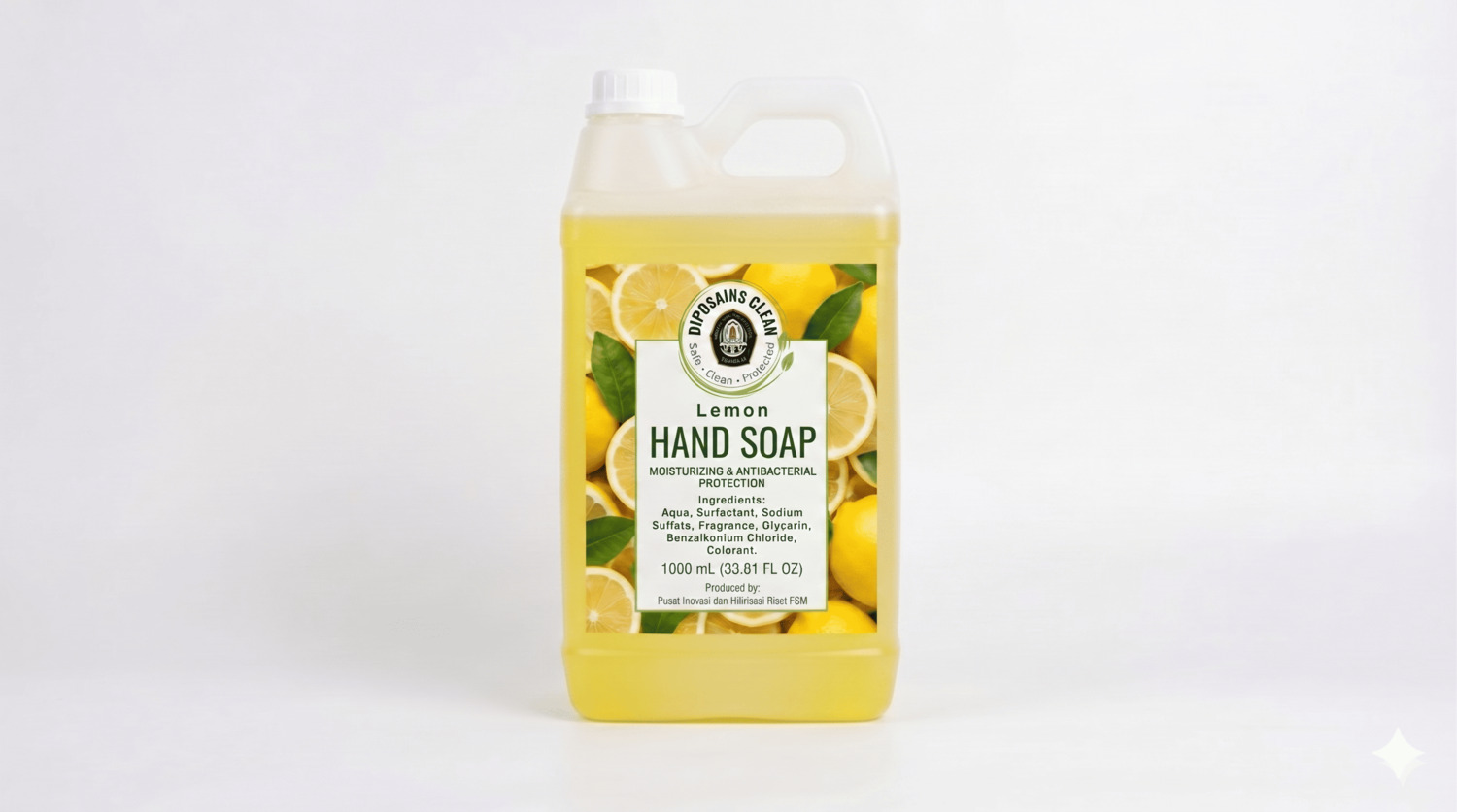 DIPOSAINS CLEAN sabun cuci tangan diformulasikan dengan bahan antibakteri yang efektif membantu membersihkan tangan dari kotoran. Varian aroma Lemon memberikan keharuman segar menyegarkan, serta diperkaya pelembap alami agar tangan tetap halus dan segar. Ukuran 1 L dengan kemasan Jerigen cocok untuk kebutuhan rumah tangga maupun usaha.